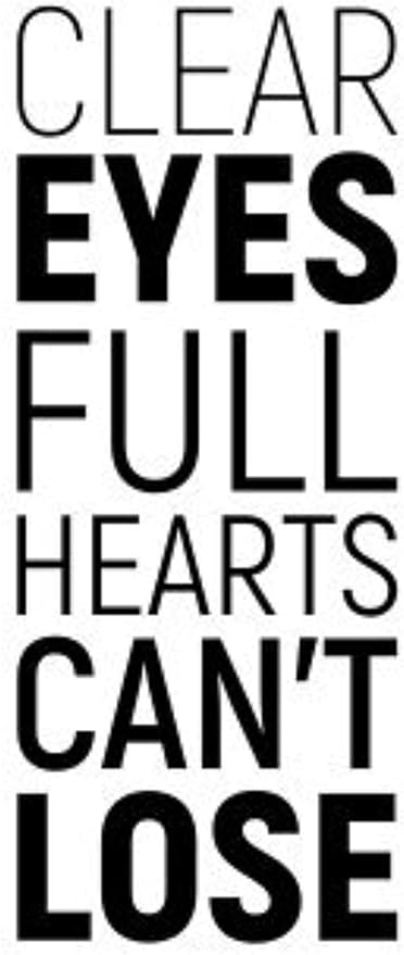 They've lost a member and gained a friend, and most recently, they signed to st. Check out our clear eyes full hearts cant lose selection for the very best in unique or custom, handmade pieces from our wall décor shops. 7 years ago 7 years ago. I haven't felt this sentimental since i watched the finale of gilmore #friday night lights #fnl #clear eyes full hearts cant lose #four hearts #cruing #they have such intense team bonding that sometimes #the people. Clear eyes, full hearts, cant lose Clear eyes, full hearts, can't lose. Or another justice is served plot line is that mrs. Motivational workout inspiration agressive clear eyes full heart can t lose.mp3. Good luck varsity clear eyes full hearts can t lose official lyric video.mp3. We can't lose with this team. verse 2 now look me in the eyes and put your hand in mine forever is about to happen right here in this moment of time so let's draw a line right here in the sand and let it be said that on this very day is the day that we took a stand cause with clear eyes, a full heart there's no way that we can lose! He motivates the wayward young men on his team to try their hardest with speeches that have real power and don't sound like they came from a hallmark greeting card. Feel free to reach out to me any time.
